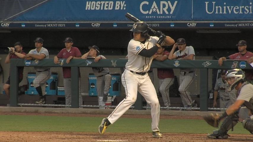 Nick Schwartz' three-run homerun helped keep the SNHU Penmen alive in the 2023 DII baseball tournament.