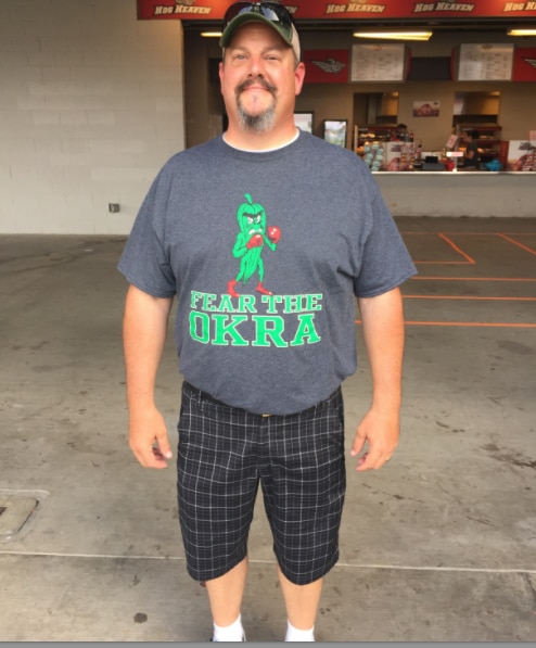 Obviously, the okra is a staple of southern cuisine. Doesn’t that make it hard for an actual Fighting Okra to eat his own mascot?