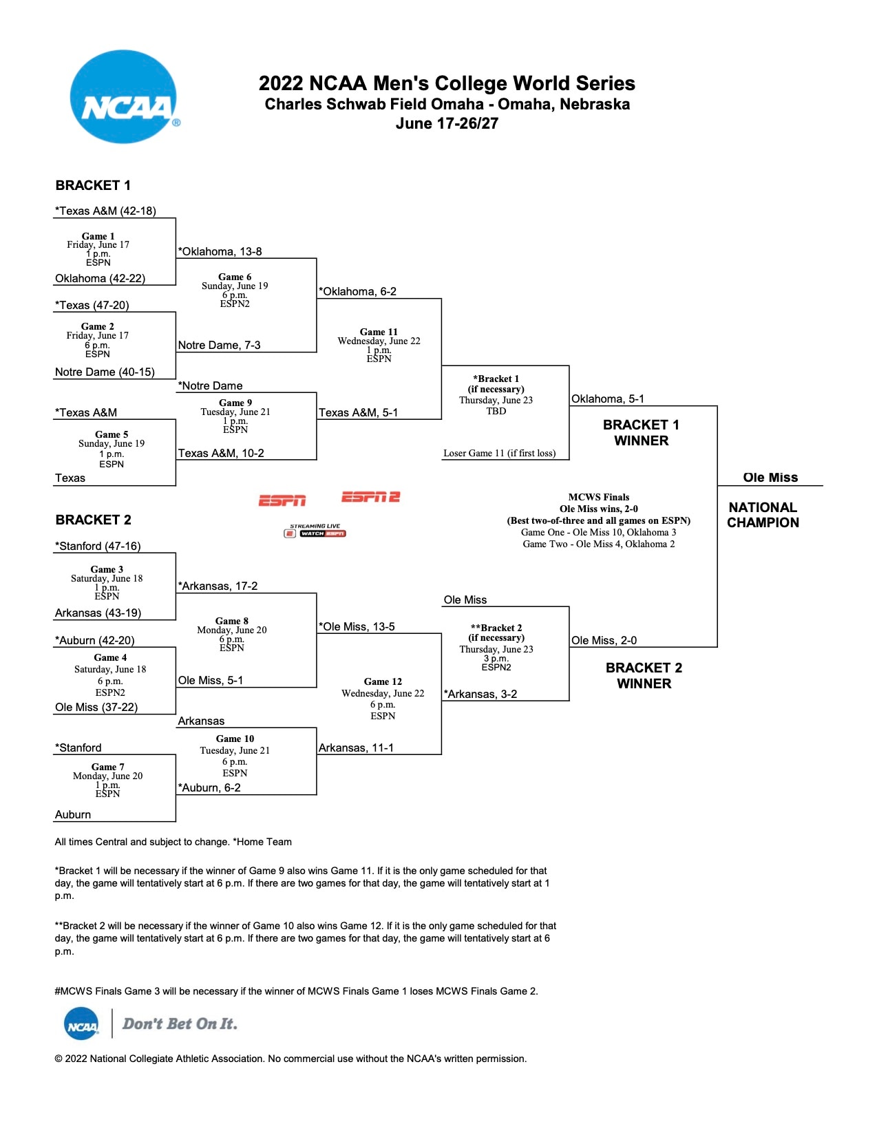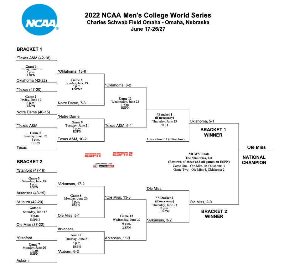 2022 Men's College World Series Bracket
