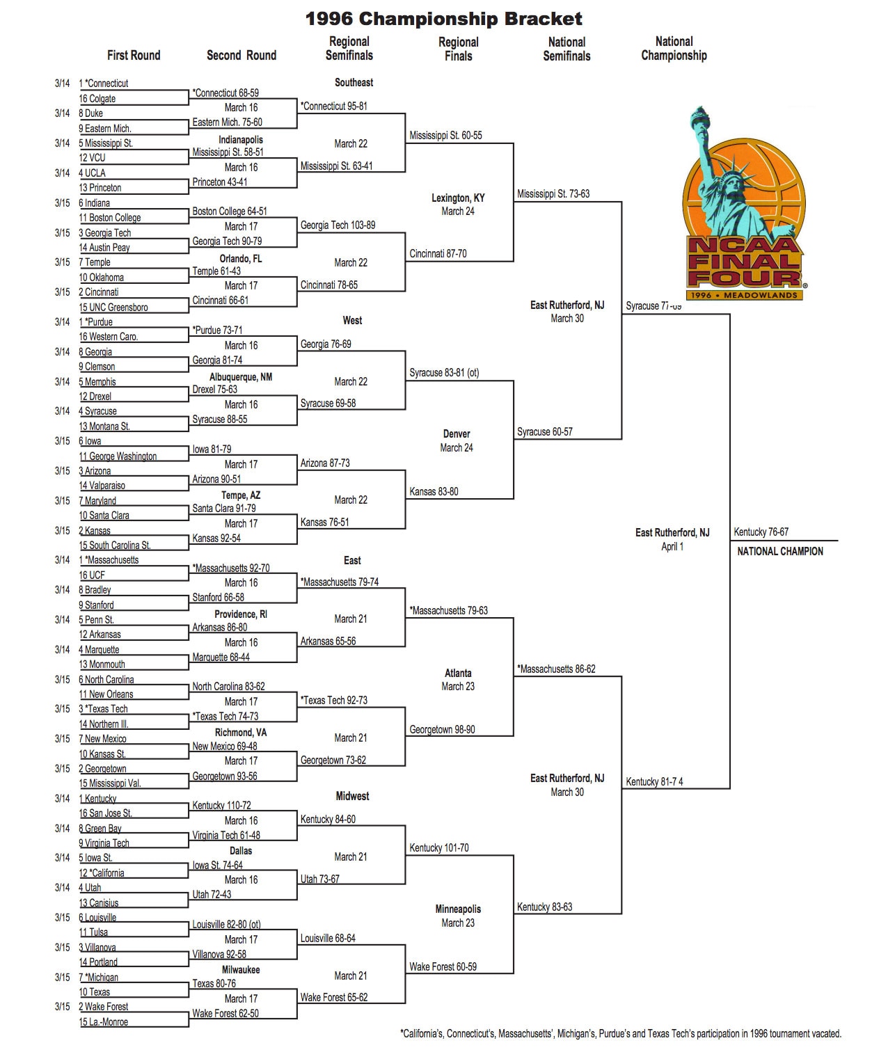 1996 NCAA tournament: Bracket, scores, stats, records