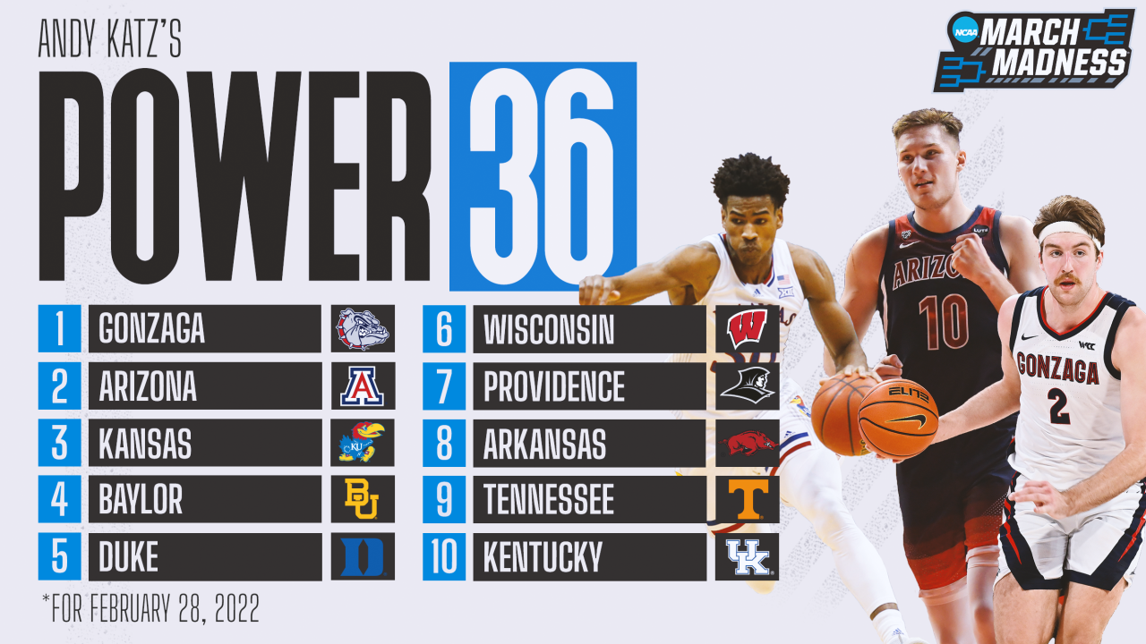 Gonzaga, Arizona, Kansas lead Power 36 after a wild week scrambles latest rankings