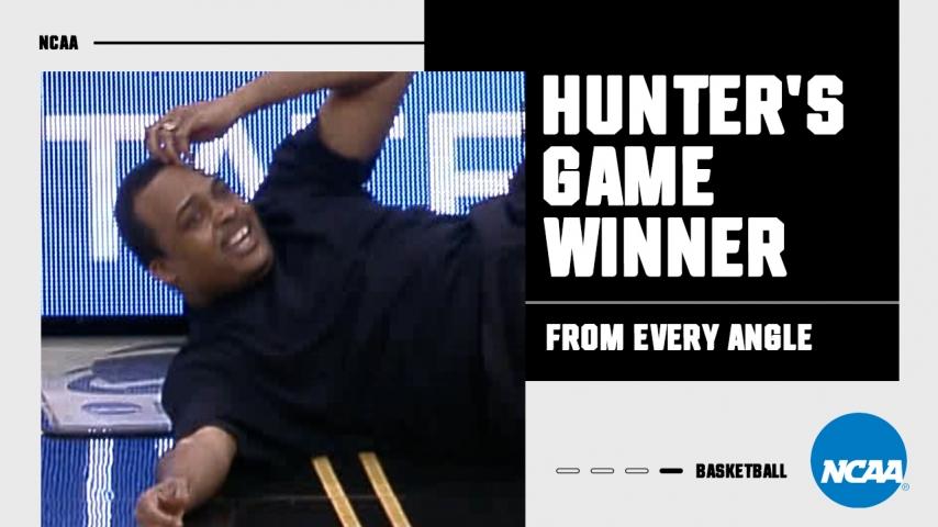Another who will live in NCAA tournament highlight eternity for falling off his stool when his son hit a buzzer-beater in a first round March Madness-style upset. Hunter.