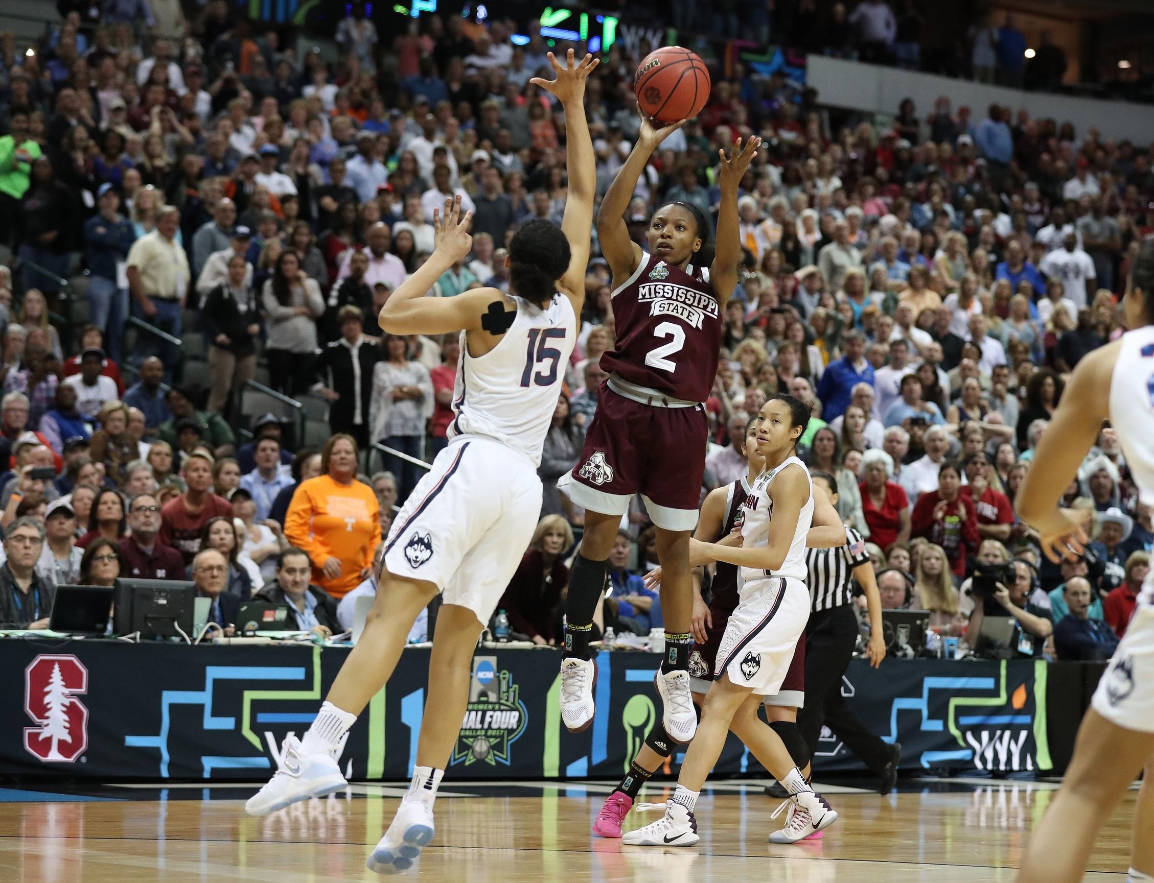 In overtime of one of the best Final Four matchups in college basketball history โ€” men or women's โ€” Mississippi State's 5-5 guard drained a jumper from the elbow to put a triumphant end to Connecticut's 111-game winning streak and send the Bulldogs to the national championship with a 66-64 win.