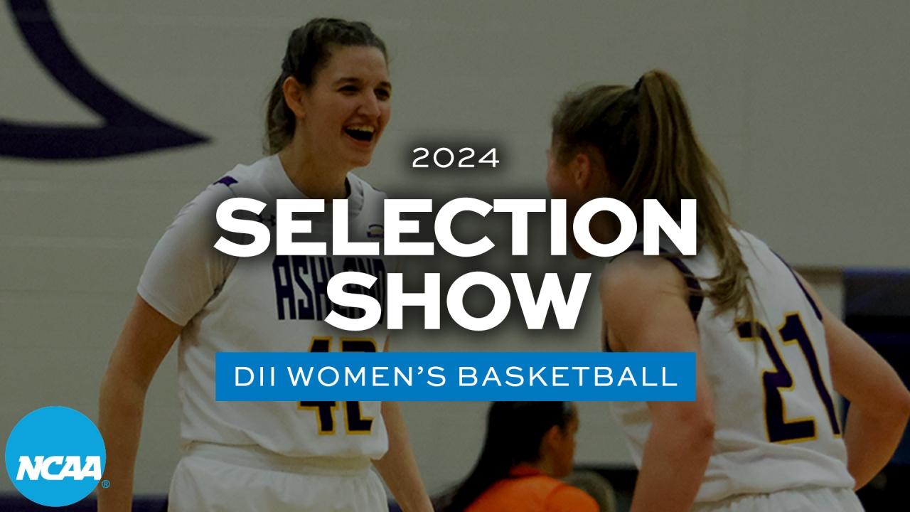 Seven eight-team regionals will be played at on-campus sites March 15, 16 and 18. The Atlantic region will have two four-team sites as a result of a split regional with men's basketball. Games will be played March 15, 16 and 19, with the championship game played at the site of highest remaining seed. The eight regional champions advancing to the Women's Elite Eight will be seeded by the Women's Basketball Committee after completion of the regionals. The 2024 NCAA Division II Women's Elite Eight will be held at the St. Joseph Civic Arena in St. Joseph, Missouri, March 25, 27 and 29. Missouri Western State University and the St. Joseph Sports Commission will serve as hosts.