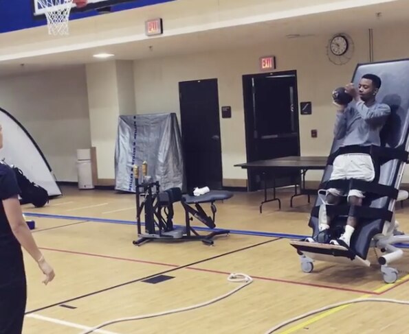 His progress has improved to the point where he was able to walk in May and on Tuesday, he shared a on Instagram of him playing catch with a football, another milestone in his recovery.