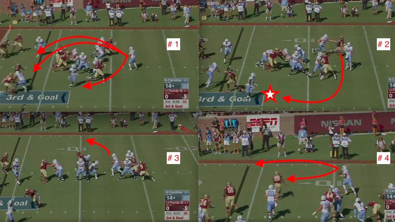 Trubisky is not nearly as fleet of foot as former Tar Heels quarterback Marquise Williams (158 carries and 948 yards in 2015), but this foray to the endzone might be an indication of what he learned as the backup a year ago.
